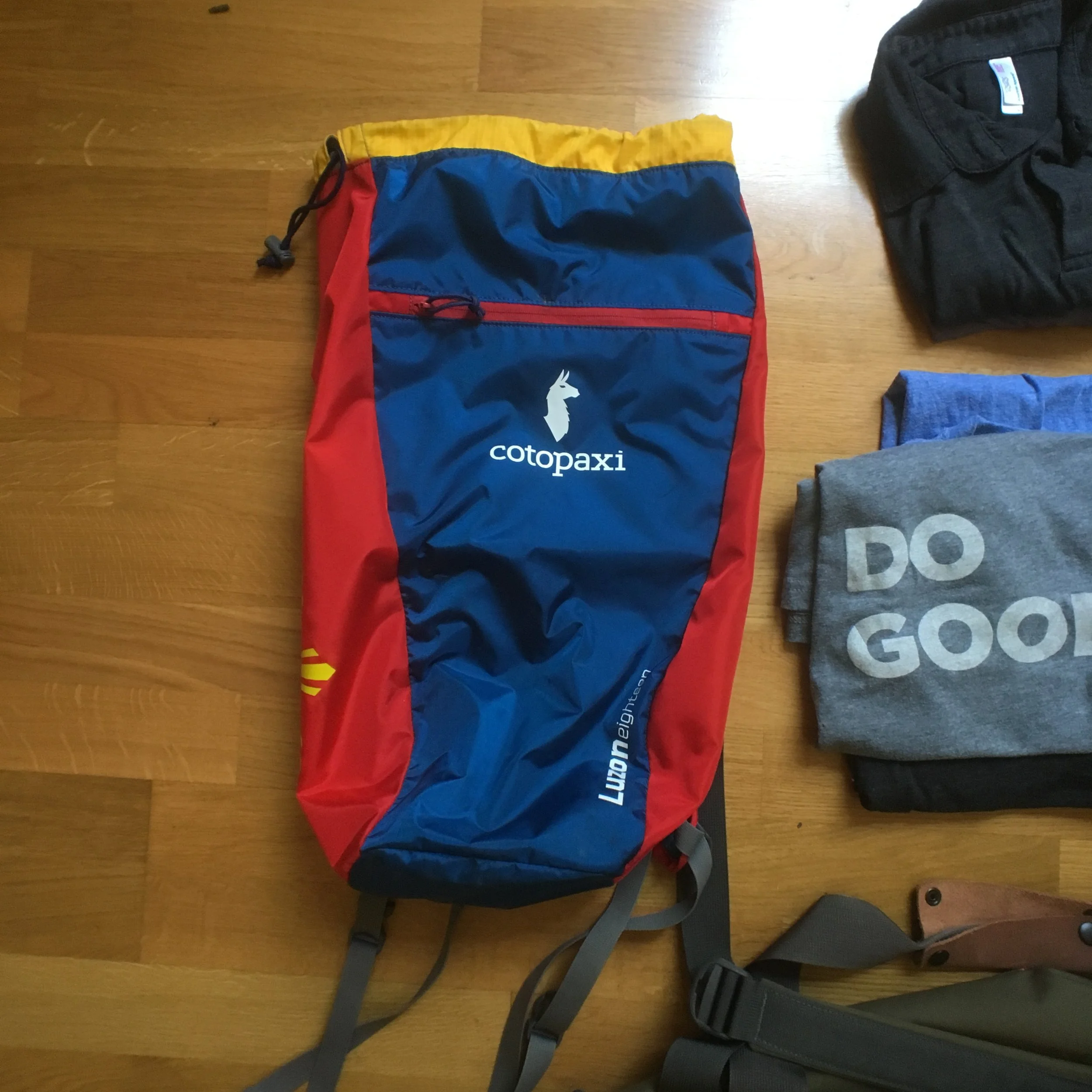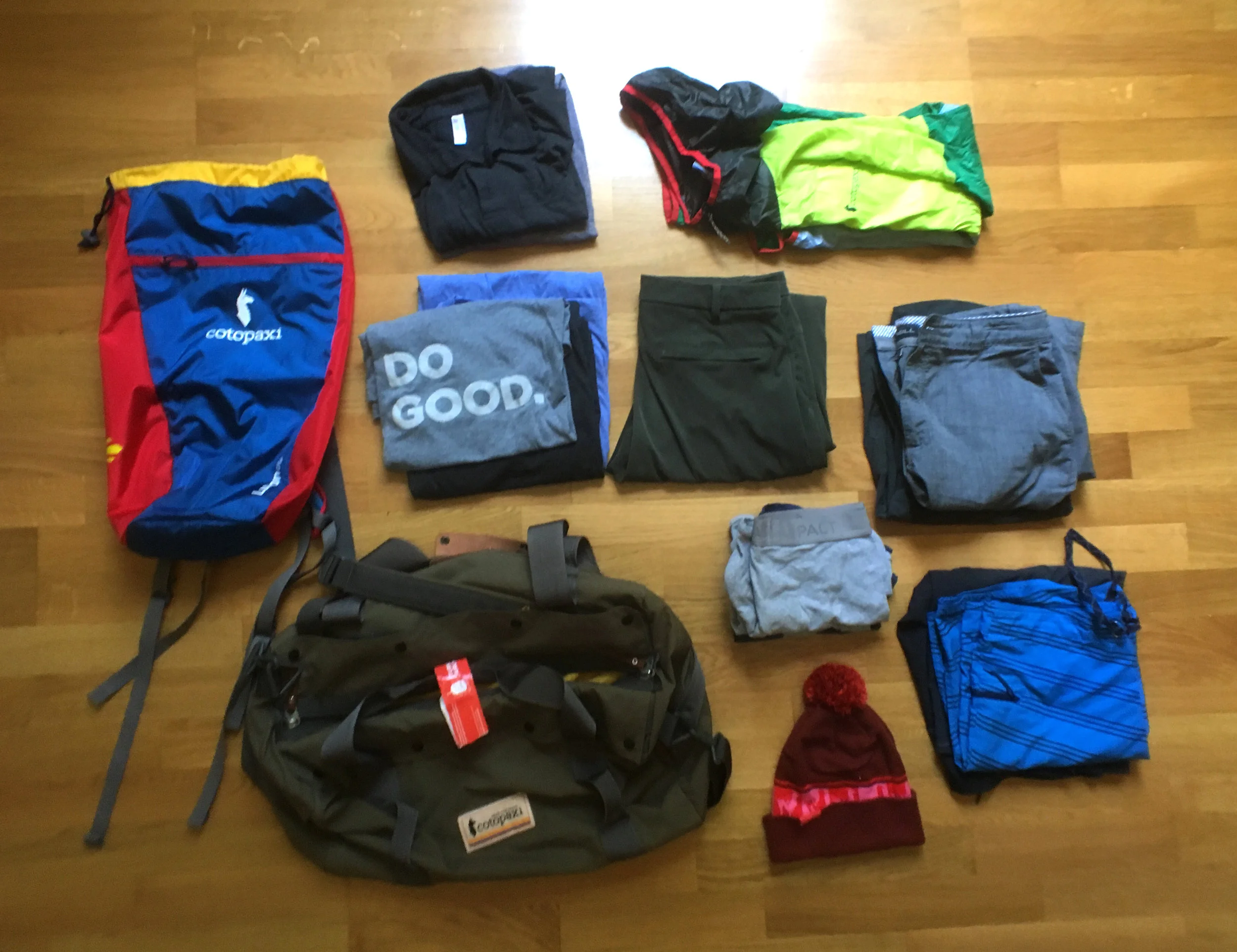 I also wanted to use this project to try out and spread the word about Cotopaxi - a newish outdoor apparel company focused on design, sustainable working practices, support of non-profits and innovation. We love their motto: GEAR FOR GOOD. They agreed to team up with me on the project and sent out a Teca windbreaker, DO GOOD tshirt, llama knit hat (awesome) and Luzon 18l daypack for me to use on the trip. (We already had a Chumpi travel duffel that we love.)