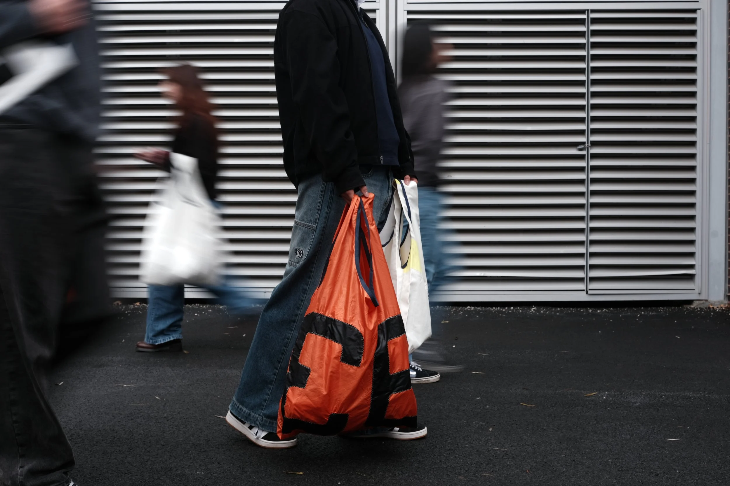 This collection was made from a large orange spinnaker sail that was too big for the boat that it came with that was made in 1971. The owners only used the sail twice before deciding that it was too big and ugly and retiring it. They called the sail “The Great Orange Pumpkin”.